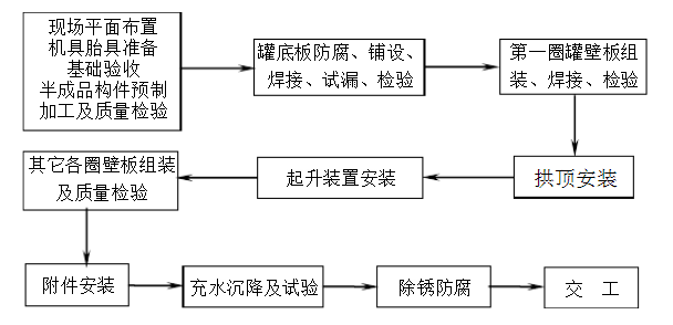 油罐電動葫蘆擬采用倒裝法施工,工藝流程圖如下: